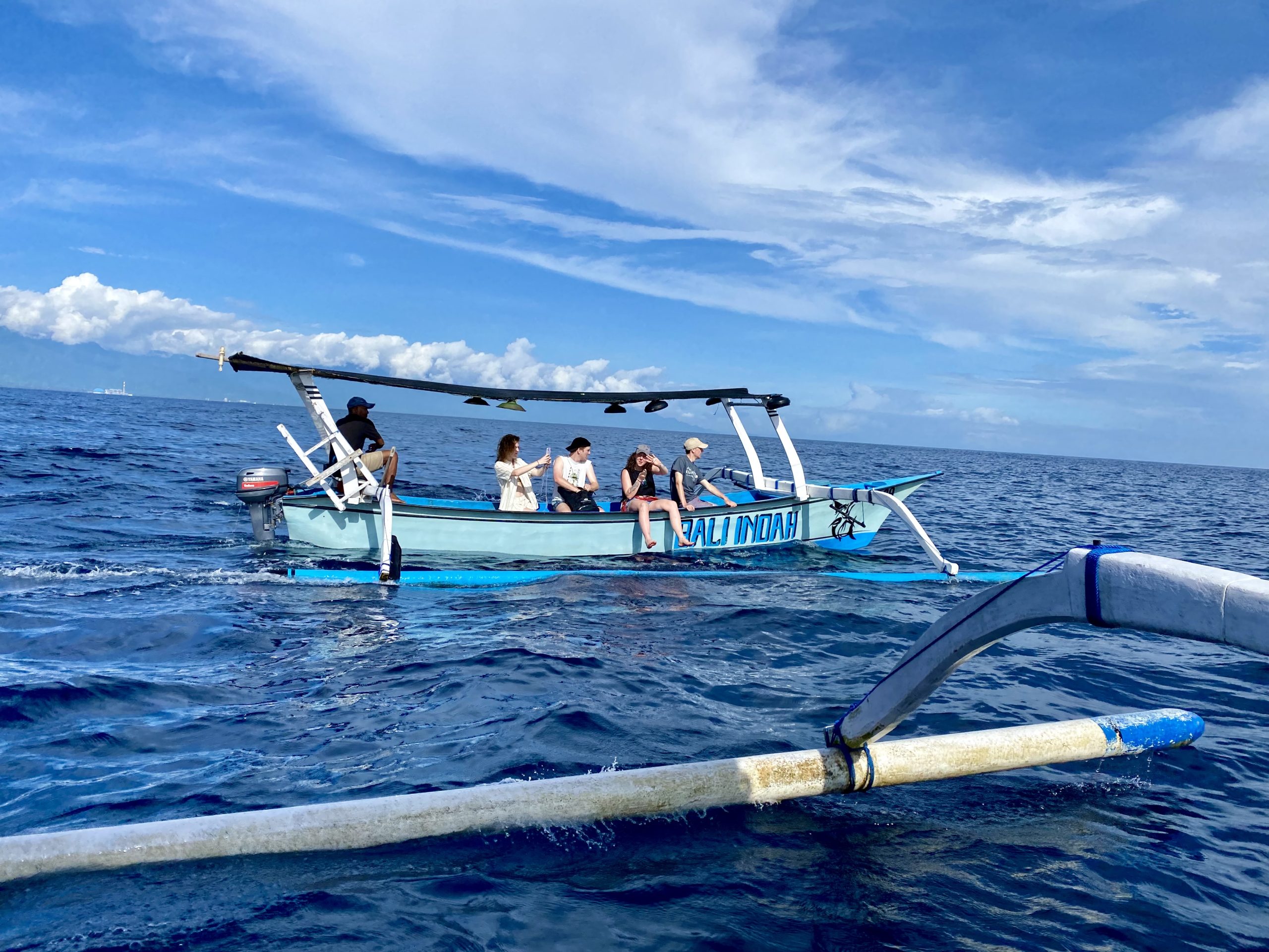 In northern Bali, around Lovina, the sea is known for its playful dolphins. Start your morning by stepping straight from the Namaste Villa & Guesthouses into the beach and boarding a traditional fishing boat. Together with a local fisherman, you will sail out to sea, where you will soon see groups of spinner dolphins jumping and playing gracefully through the waves